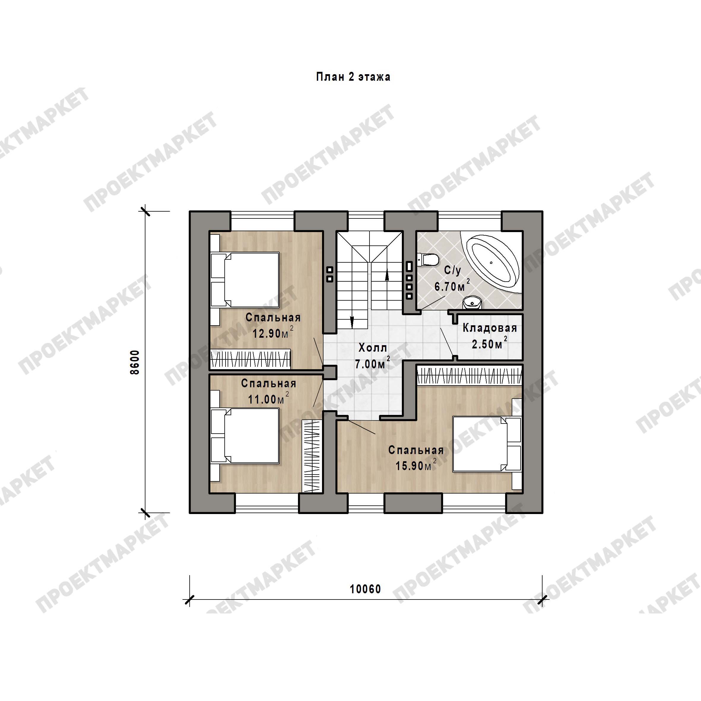 Визуально небольшое сооружение по проекту дома площадью до 100 кв метров внутри очень комфортное и многофункциональное. Мы предлагаем проекты с разным количеством комнат, с удобным размещением санузлов, кухни и гостиной, проходными или не проходными комнатами и так далее. Все проекты коттеджей запроектированы для удобства будущих владельцев.