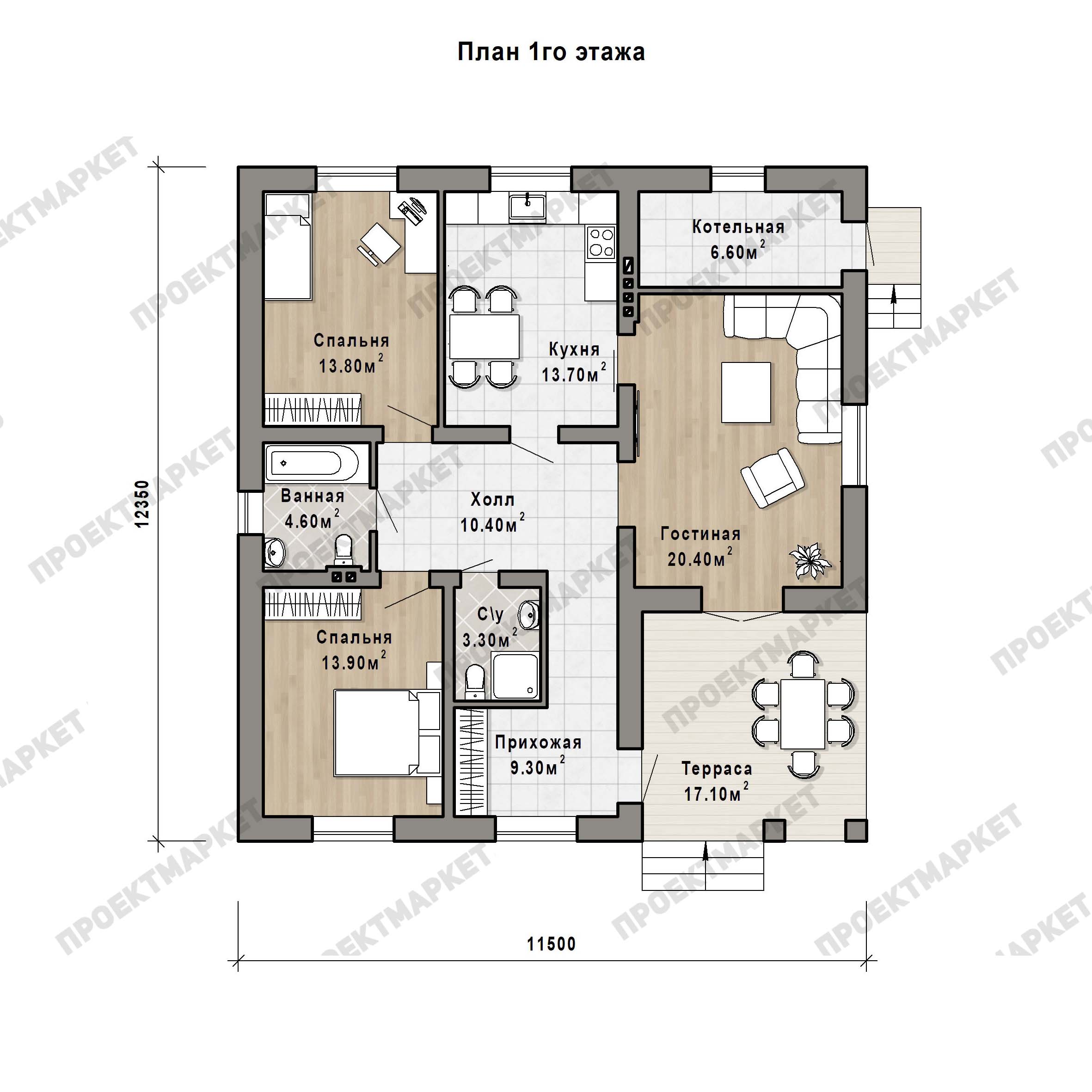 Любое строительство начинается с планировок этажей дома. Если вы мечтаете о доме из кирпича, начините с проекта дома, предлагаемого компанией «Проектмаркет».